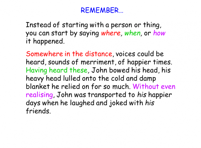 Prioritize unique character features. Describe snow in writing To learn what settings are and how to describe them in your writing. When describing a person children should try to build a full picture by using descriptive language.